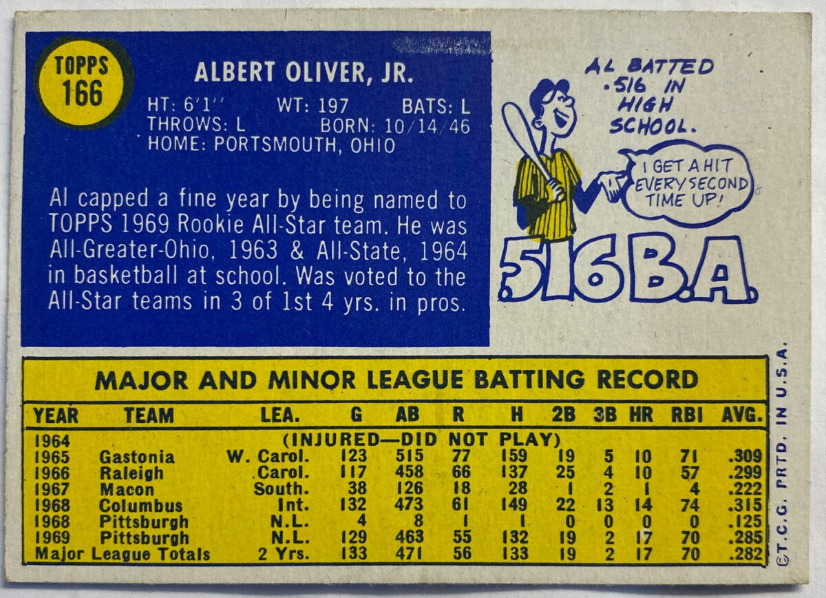 Albert Oliver Jr. is an American former professional baseball player. He played in Major League Baseball as an outfielder and first baseman from 1968 through 1985