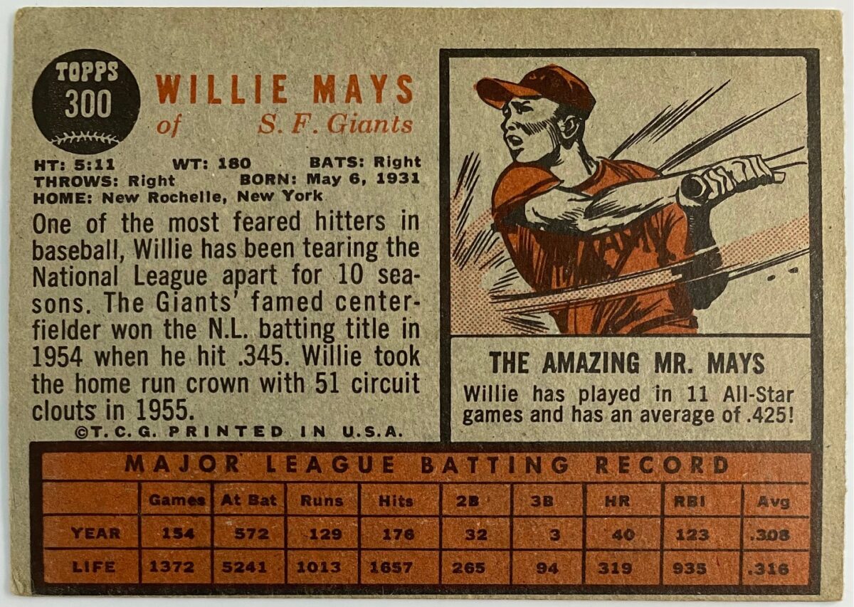 Willie Howard Mays Jr. (born May 6, 1931), nicknamed “The Say Hey Kid”, is an American former professional baseball center fielder. He spent almost all of his 22-season Major League Baseball (MLB) career playing for the New York/San Francisco Giants (1951–1952, 1954–1972) before finishing his career with the New York Mets (1972–1973). Regarded as one of the greatest baseball players of all time, he was elected to the Baseball Hall of Fame in 1979.